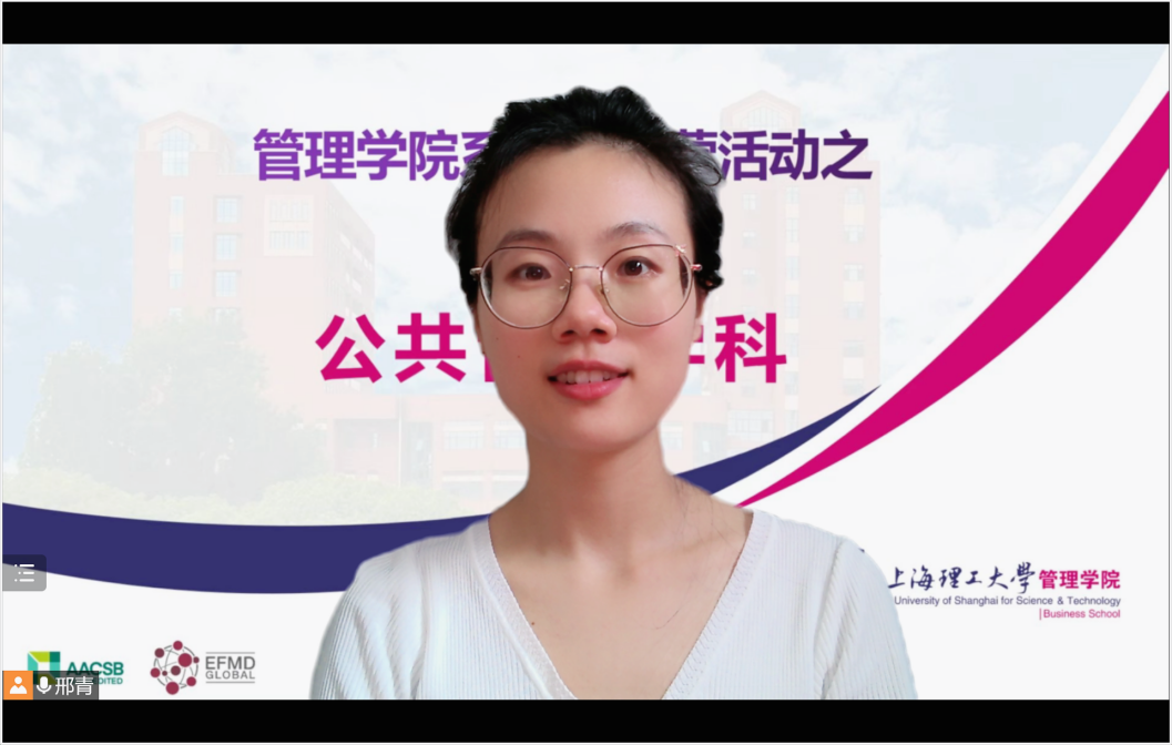 闵萌萌同学从科学研究、项目实践、社会实践等角度分享了自己在上理公管读研的两年心路历程和自我成长过程。她提到,在学院平台和导师的帮助和鼓励下,自己开始勇于突破、敢想敢做,不仅积累了更多的专业知识,还收获了参与抗疫一线、创设了“微耕心”党建品牌等宝贵的成长经验。