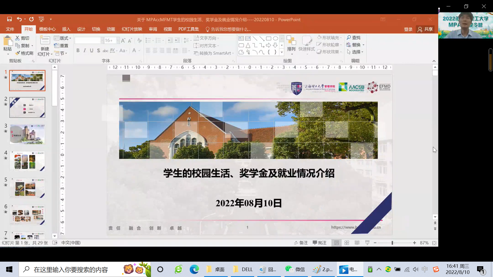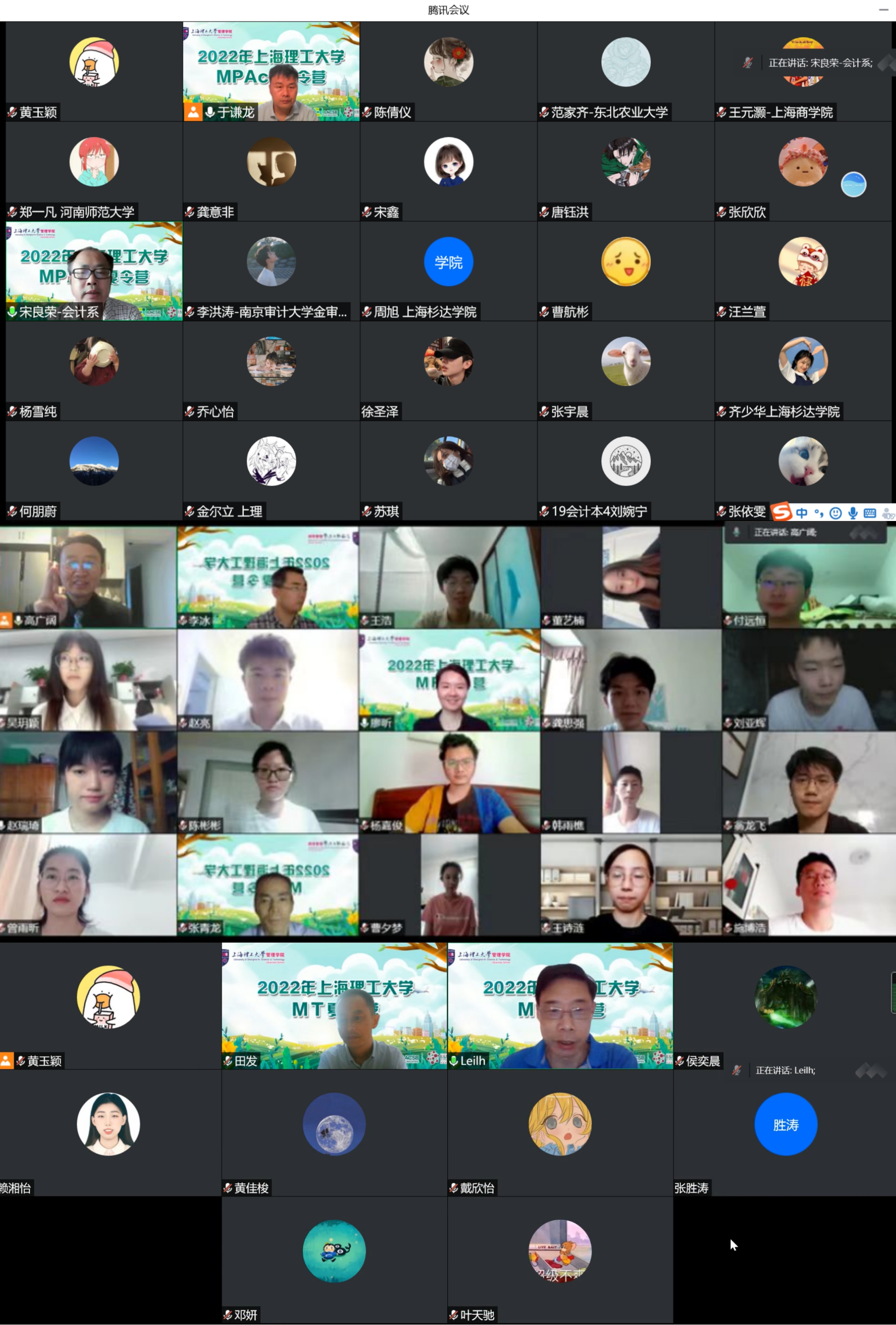 2022年8月10日,上海理工大学管理学院MPAcc/MF/MT全国优秀大学生夏令营线上顺利举办。本届夏令营得到了社会的广泛关注,优秀大学生踊跃报名。上海理工大学管理学院副院长、专业学位教育中心副主任张永庆、MPAcc学科带头人宋良荣、MPAcc项目副主任于谦龙、MF项目主任高广阔、MT项目主任雷良海、财政税务系主任田发、专业学位教育中心综合办公室副主任王永联老师等教师代表、专业学位教育中心招生负责老师,以及来自全国包括985、211等各高校近五十二位同学参加了此次夏令营活动。本次夏令营包括开营仪式、学校学院概况介绍、校园生活、奖学金及就业情况、名家讲座、项目介绍及线上面对面互动交流等环节。