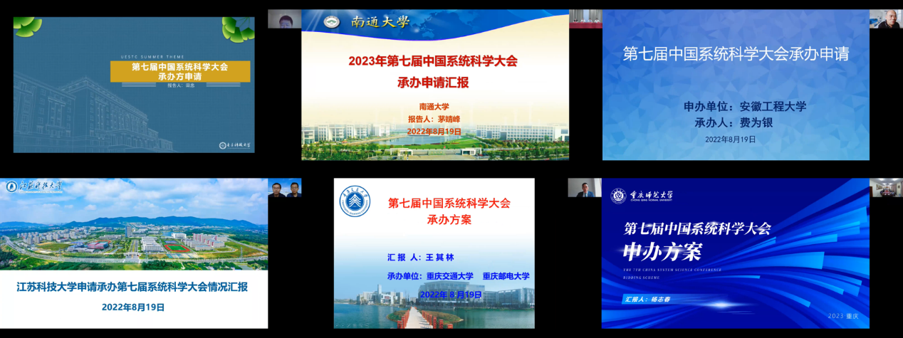 随后,下届中国系统科学大会六所申办单位逐一进行申办答辩。答辩结束后,指导委员会进行讨论并投票表决,郭雷院士代表中国系统科学大会指导委员会宣布由重庆交通大学与重庆邮电大学联合承办第七届中国系统科学大会、南通大学承办2023年系统科学前沿论坛、安徽工程大学承办第八届中国系统科学大会。