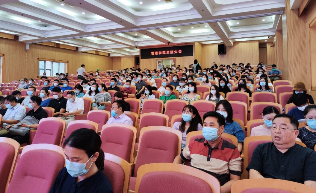 9月13日下午,管理学院在经管大楼A楼5楼第一会议室召开了本学期第一次全院大会。学院党政领导班子成员及全体教职工出席大会,会议由院长赵来军教授主持。