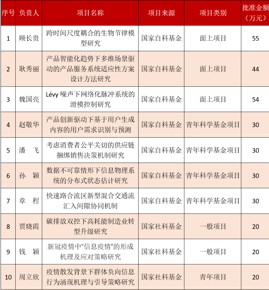 上海理工大学管理学院2022国家基金立项名单