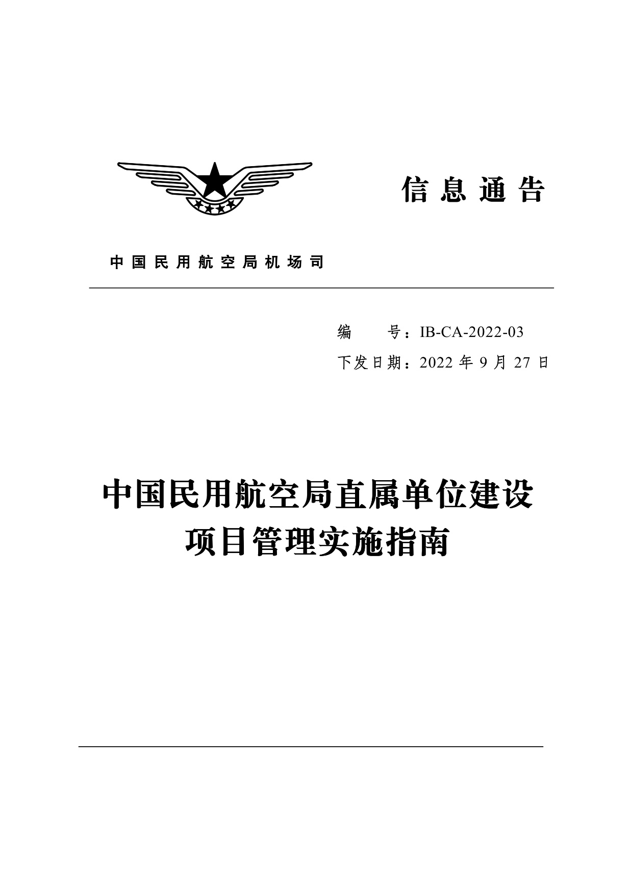《中国民用航空局直属单位建设项目管理实施指南》(IB-CA-2022-03)封面