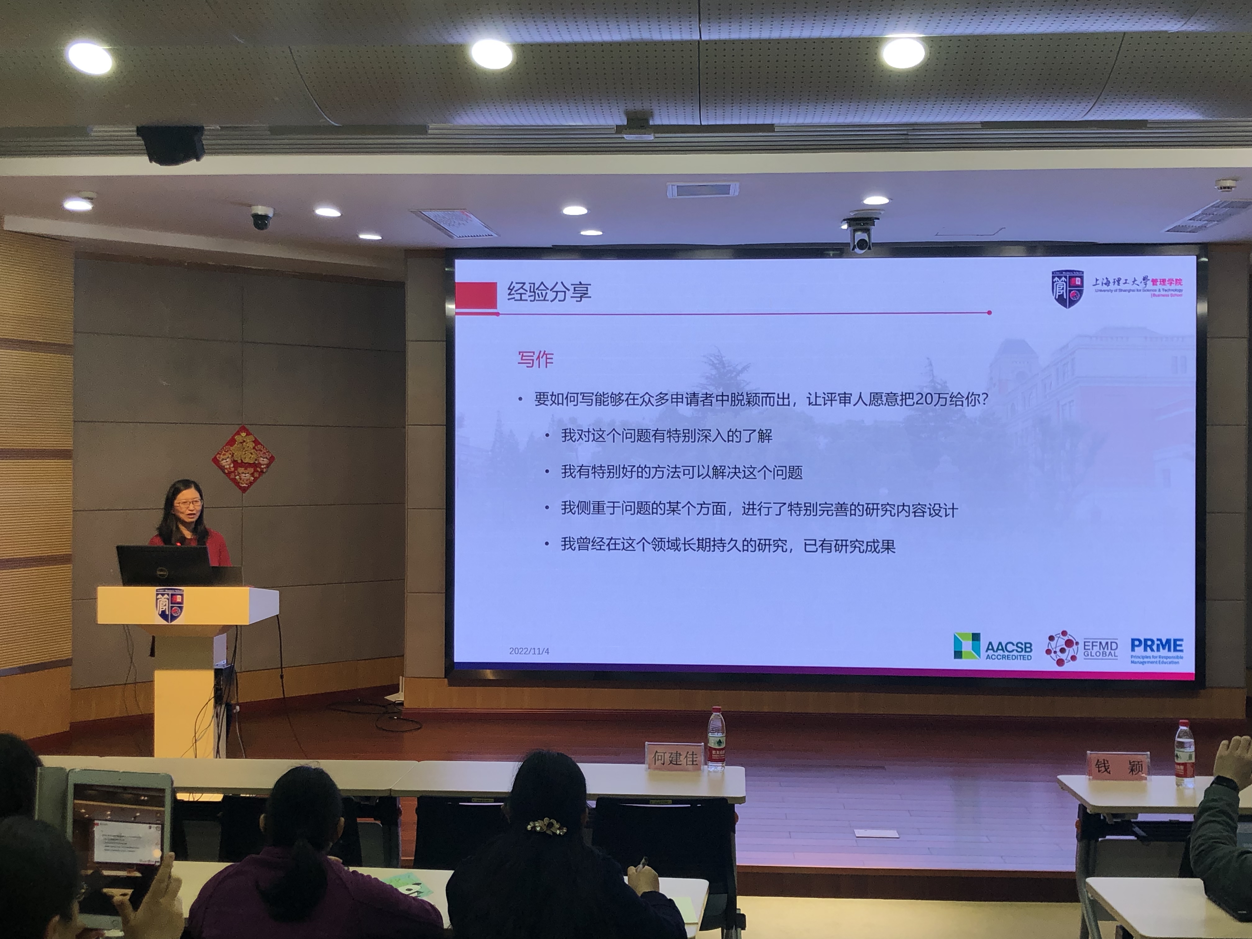 为进一步调动教师申报基金的积极性,激发科研活力,拓展研究思路,11月4日,学院在四楼第二会议室报告厅举办沪江经管论坛系列活动(第三十六期)之2023年国家社科申报学术沙龙。钱颖教授、赵欣副教授应邀为学院教师作报告,分享申报经验。会议由何建佳副院长主持,赵来军院长及30余名教师参与了会议。