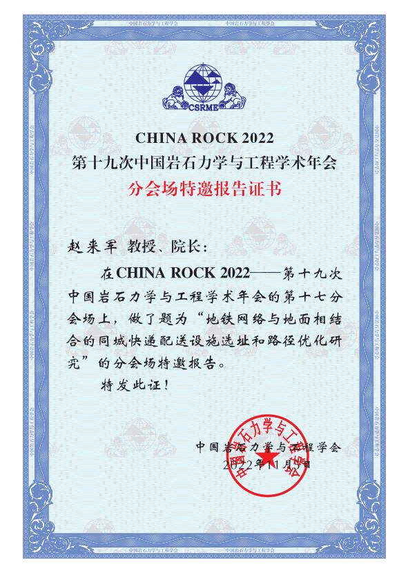 赵来军教授在2022年11月3-6日期间参加了CHINA ROCK 2022第十九次中国岩石力学与工程学术盛会,并在第17分会场作主题报告。