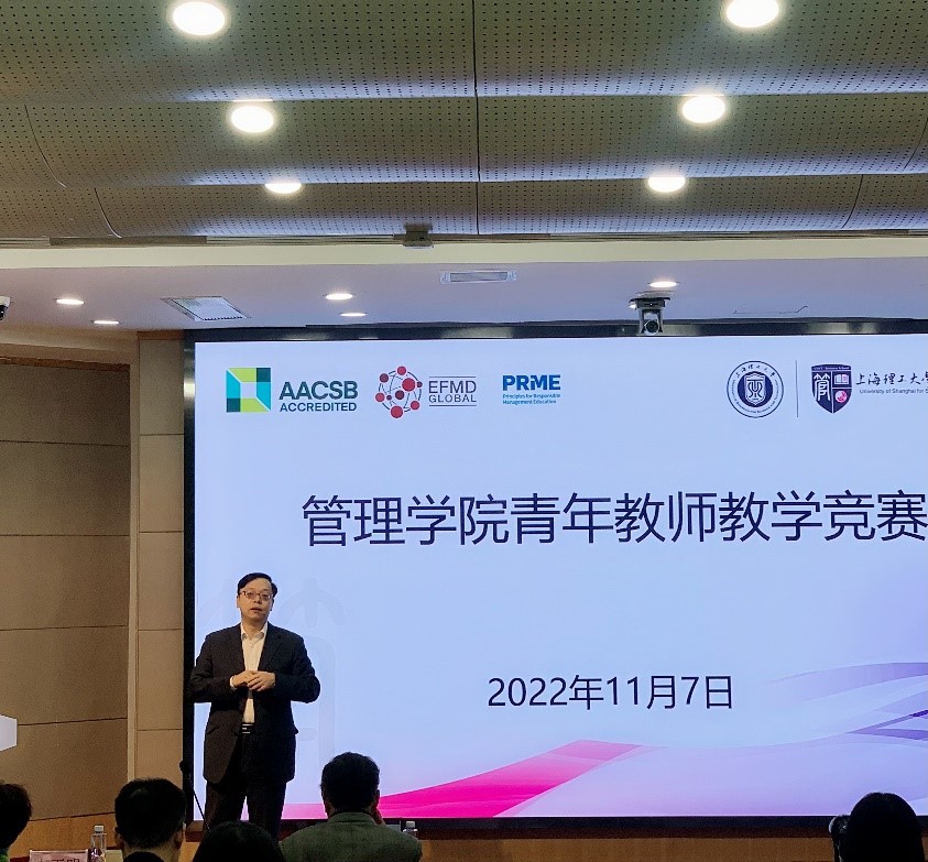 为进一步提升我院青年教师教学水平和人才培养质量,管理学院于11月7日举行了2022年度青年教师教学竞赛。院长赵来军、党委书记马静波、副院长张峥、校督导李正明、原副院长杨坚争、原副院长严广乐、各系教学系主任以及近五年进校的青年教师参加了活动。教学竞赛由副院长张峥主持。