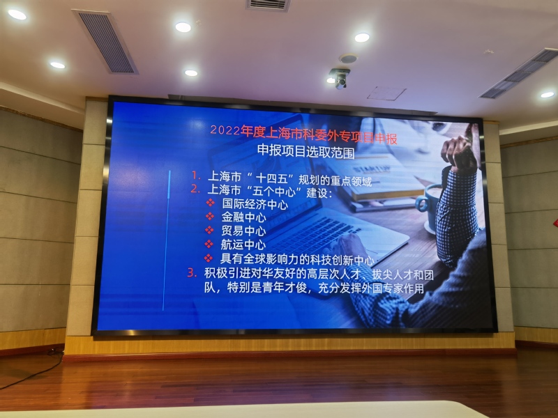 潘涛具体从国家层面和上海市层面的“高端外国专家项目(含外国青年人才项目)”的申报时间、申报要求、申报形式、经费支持及注意事项等方面做了详细的解释。参会的老师们表现出极大的兴趣,纷纷踊跃提问,对项目申报的细节问题同潘涛展开热烈的讨论。
