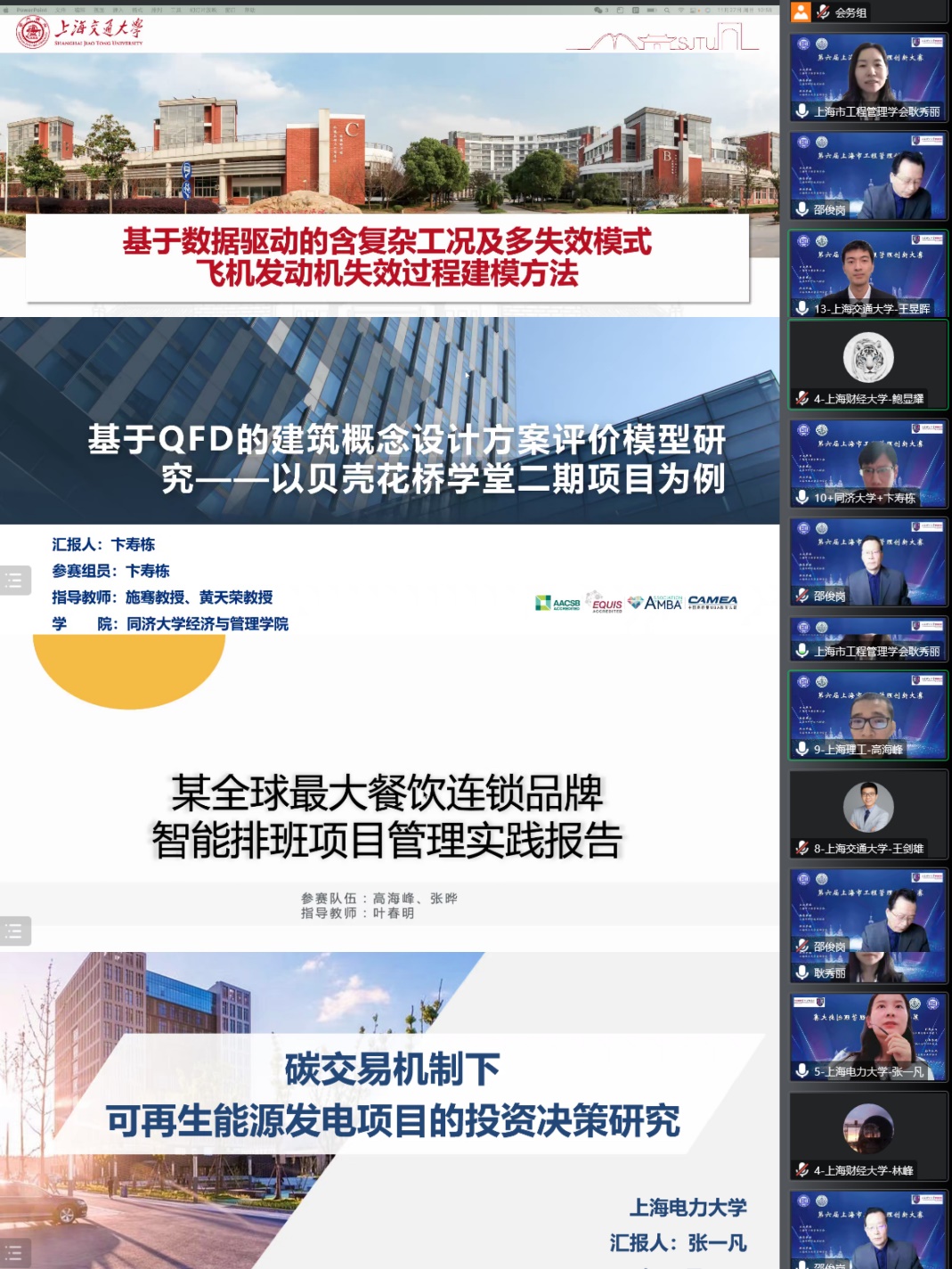 11月27日,在上海市科学技术协会的指导下,由上海市工程管理学会主办,上海理工大学管理学院承办的第六届上海市工程管理创新大赛线上举行。本次大赛以“工程管理与系统思维”为主题,旨在促进工程管理领域的创新成果推广,提升高校工程类及工程管理(MEM)专业学生解决工程管理领域实际问题的能力,提供一个高水平、跨行业、多维度的学术交流平台。上海市工程管理学会副理事长邵俊岗教授(上海海事大学)担任评委组组长。上海理工大学管理学院副院长张峥教授出席活动并致辞。