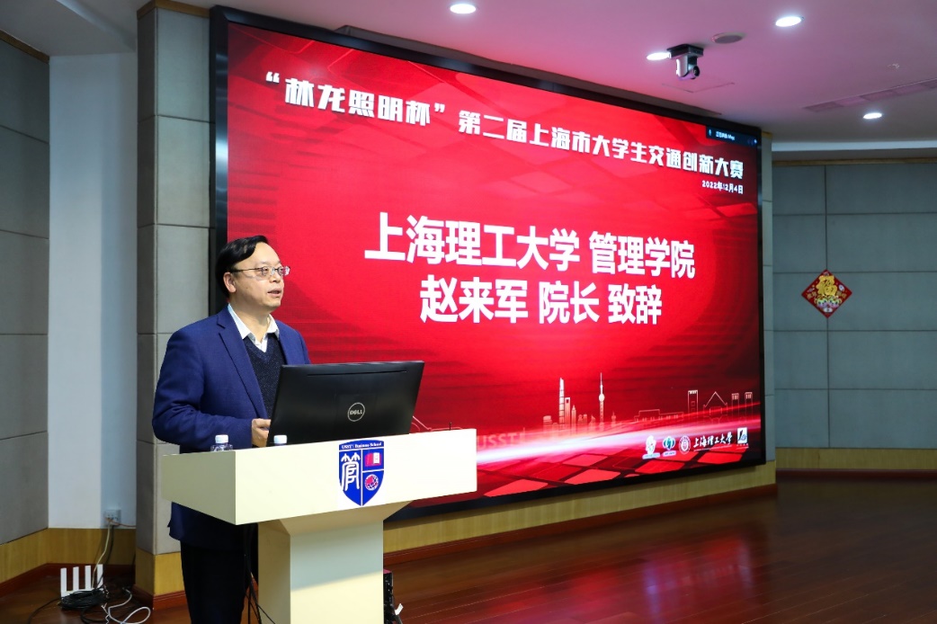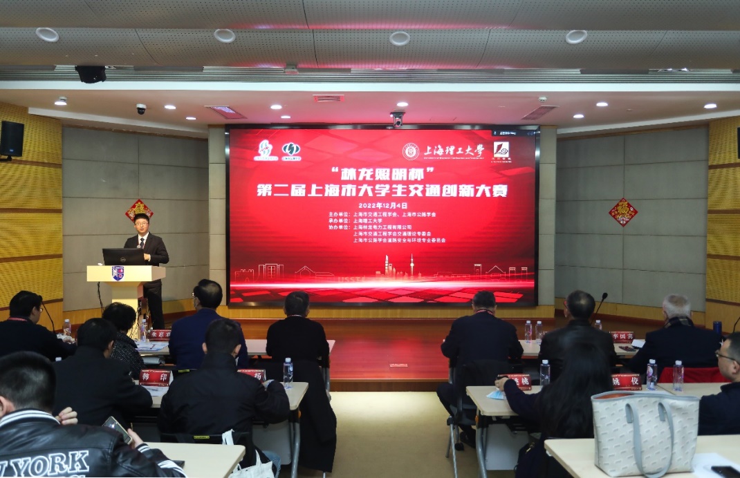 12月4日,由上海市交通工程学会和上海市公路学会主办,上海理工大学承办,上海林龙建设工程有限公司协办的“林龙照明杯”第二届上海市大学生交通创新大赛决赛在上海理工大学管理学院顺利举行。出席决赛的有来自上海市交通工程学会、上海市公路学会、上海林龙建设工程有限公司、同济大学、上海交通信息中心、上海市住房和城乡建设管理委员会、上海市交通委员会、上海电科智能系统股份有限公司、华东建筑设计研究院有限公司等交通行业相关单位的十四位校外评审专家,上海理工大学管理学院院长赵来军,创新创业学院院长郝润科,交通运输工程学科带头人韩印,交通系统工程系的师生代表以及所有参赛成员。