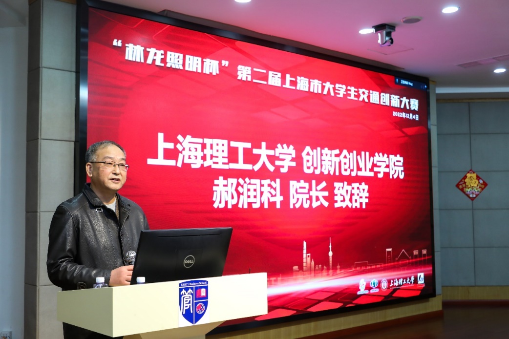 郝润科代表上海理工大学对经过层层选拔进入决赛的各位选手及指导老师表示祝贺,简要介绍了我校近年来在创新创业人才培养方面取得的成果,感谢上海市交通工程学会、上海市公路学会主办本届大赛,为上海市交通运输相关专业师生搭建了一个提高创新创业能力的实践平台。