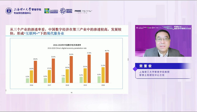 葛玉辉教授作了题为“助推企业文化落地,开创行为价值增值征程”的学术演讲,从塑造、引导员工行为出发,阐述了要激励有效行为,约束无效行为的行为价值理论,使员工行为价值放大。樊重俊教授作了题为“数字经济与企业数智化转型”的学术演讲,介绍并分析了国内外数字经济与企业数智化转型近几年的发展情况与特点。