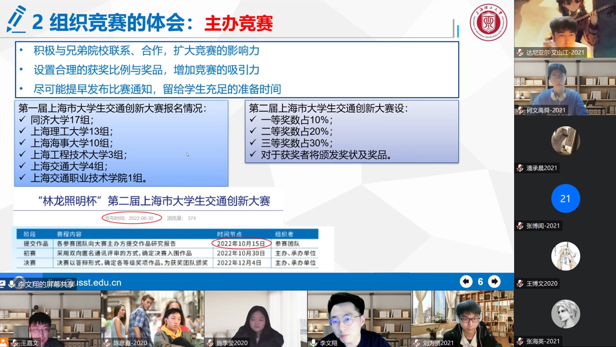 随后,开展了交通工程专业师生线上见面活动。各位参会教师逐一介绍自己的研究方向、所授课程,并针对性传授了学习与科创经验,为学生提供全方面的建议。该环节加强了学生与老师之间的联系,让学生更了解专业教师、学科特点。