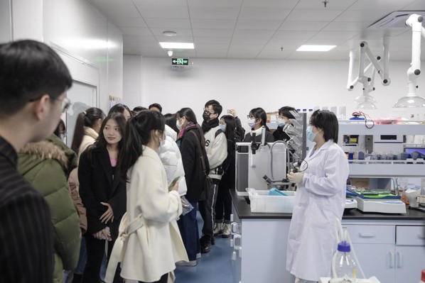 接下来,同学们参观了蛋白组学新技术和应用卓越创新中心,该中心主要从事医学方面科研服务,接受医院委托设计实验,并进行实验结果的处理,最终出具完整的实验报告。此外,同学们还参观了相关仪器,如PCR仪、自动化酶解台等,这些仪器能够极大地节省人工成本,提高实验效率。