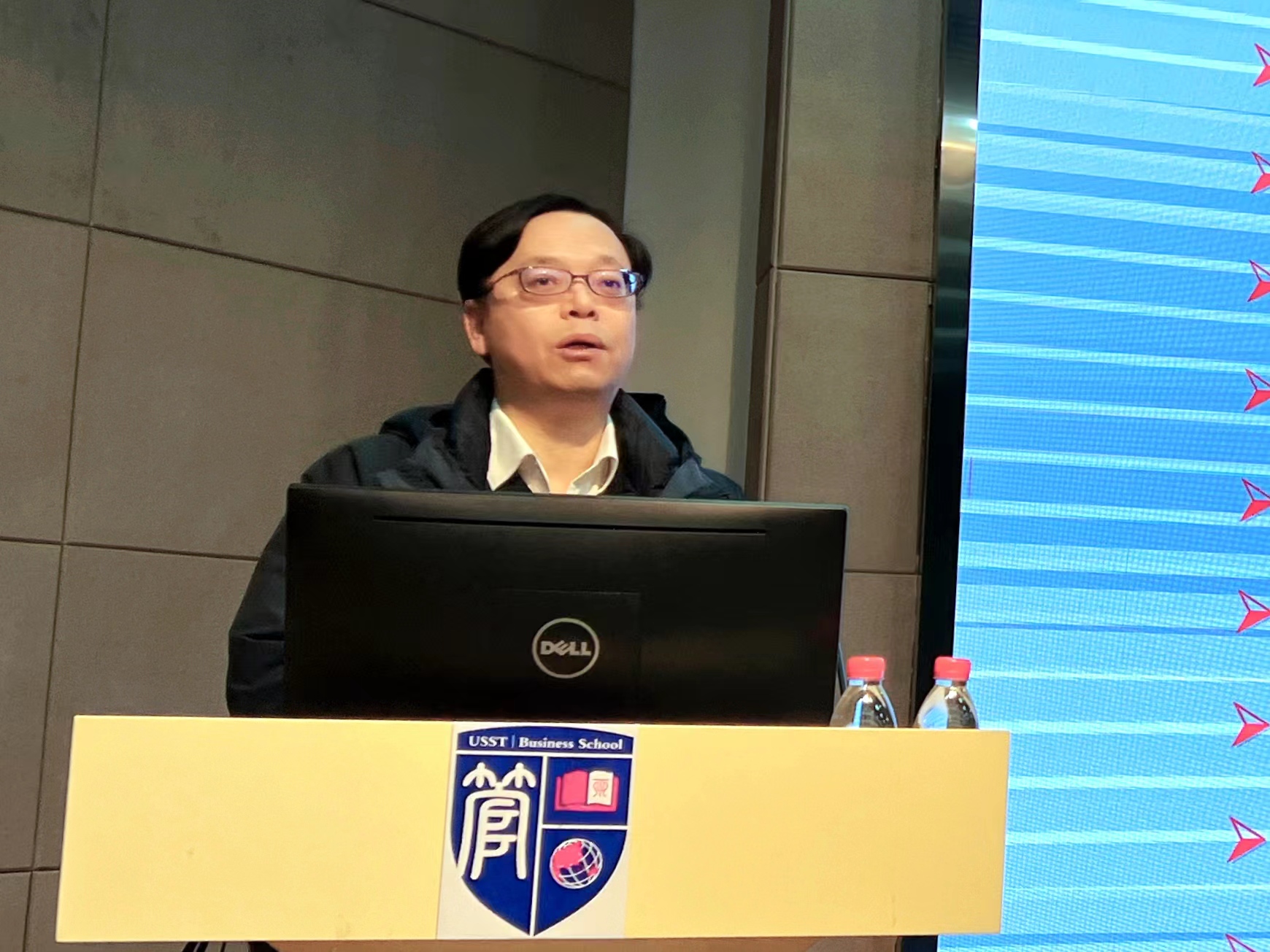 首先,管理学院院长赵来军致欢迎辞。他表示,管理学院大力支持人工智能与智能医学工程专业之间的交流,希望通过本次活动为各位学者搭建高效、持续、深入、专业的交流与展示平台。接着,赵来军讲到,党的二十大报告中指出要推动战略性新兴产业融合集群发展,构建新一代信息技术、人工智能等一批新的增长引擎,人工智能日益成为引领新一轮科技革命和产业变革的核心技术,从人工智能在医疗领域的应用场景、医疗健康领域的“数智化”发展情况、我校近年来开展医工交叉合作研究项目情况等方面介绍人工智能与医疗健康的交叉融合。