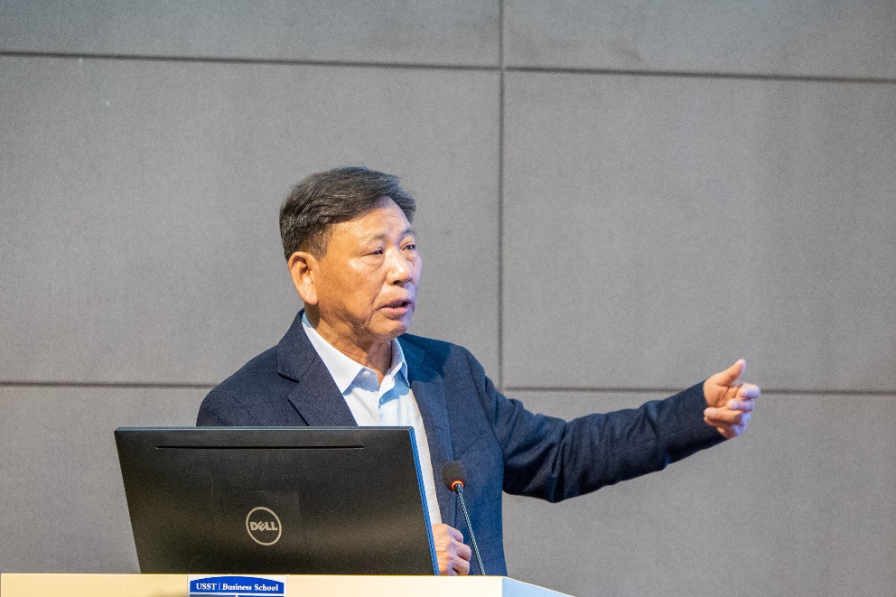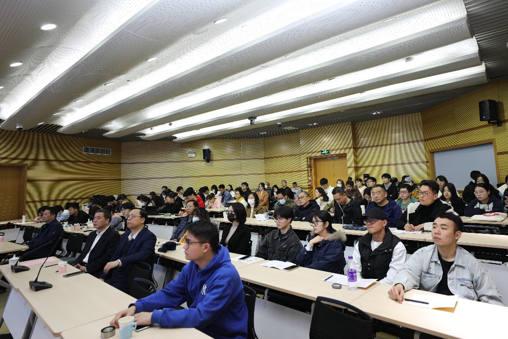 杨善林院士从“数据智能与深度学习方法新进展”“人工智能与领域科学的互动发展” “人工智能与制造服务业融合发展” “人工智能与管理科学的深度融合”四个方面展开阐述,深入浅出地介绍了人工智能在生命科学、考古学、数学、气候环境科学、化学、医疗健康以及艺术等各领域创造的新成果。他表示,基础研究是原始技术的创新的源泉,集成创新是高端产品研发的必然。杨善林院士深入浅出的报告让与会师生深受启发。大家围绕人工智能专业人才培养等问题进行了深入的互动交流。
