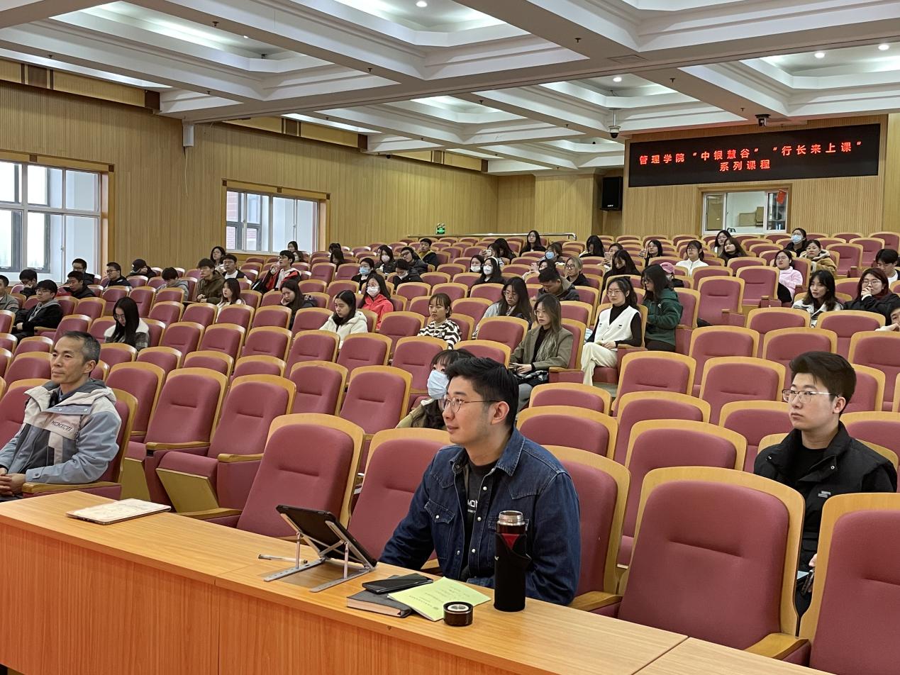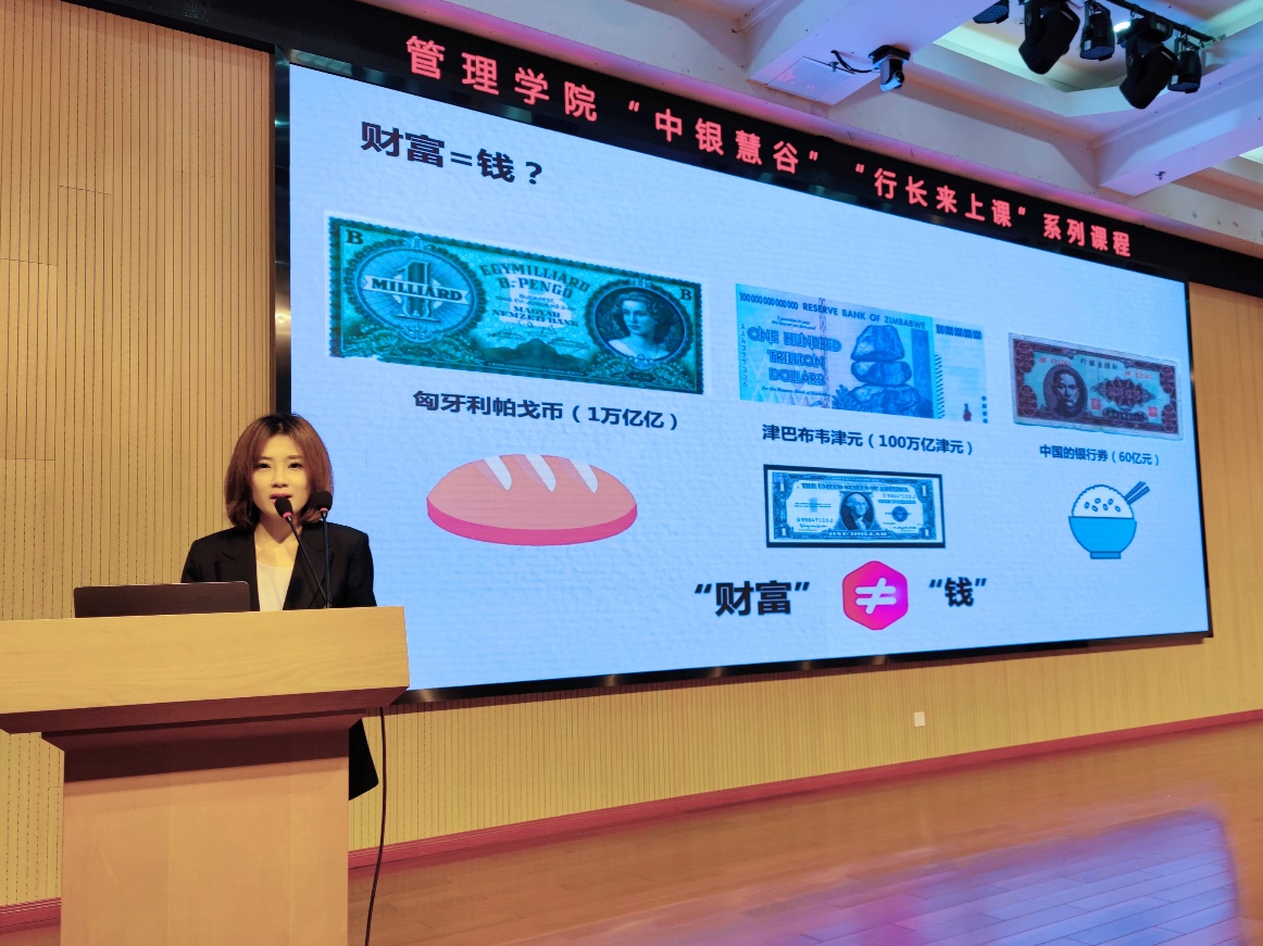 3月23日,中国银行上海分行私人银行部私行客户经理章蕾为管理学院金融专业本科生讲授“金融学”课程。课前,管理学院副院长赵靖向章蕾介绍了学院人才培养的特色。金融系主任张青龙、教师任丹蕾以及管理学院相关专业的本科生和研究生等旁听了课程。