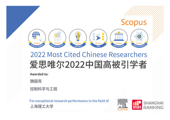 3月28日,爱思唯尔(Elsevier) 重磅发布2022“中国高被引学者” (Highly Cited Chinese Researchers)榜单。我院系统科学博导、系统科学系教授魏国亮入选。