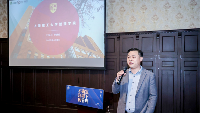 2023年4月8日,“上海管理科学2023:不确定环境下的管理”系列分论坛第一场于上海科学会堂隆重举行,上海理工大学管理学院副院长何建佳教授、信管系主任樊重俊教授、工业工程系书记耿秀丽教授、电子商务发展研究院副院长朱小栋副教授受邀作为主讲嘉宾出席分论坛。本次分论坛主题为:数智化与企业创新,与会嘉宾就数智化背景下企业面临的不确定环境以及企业管理的未来发展展开讨论。分论坛同时在网上进行直播,会议反响热烈。