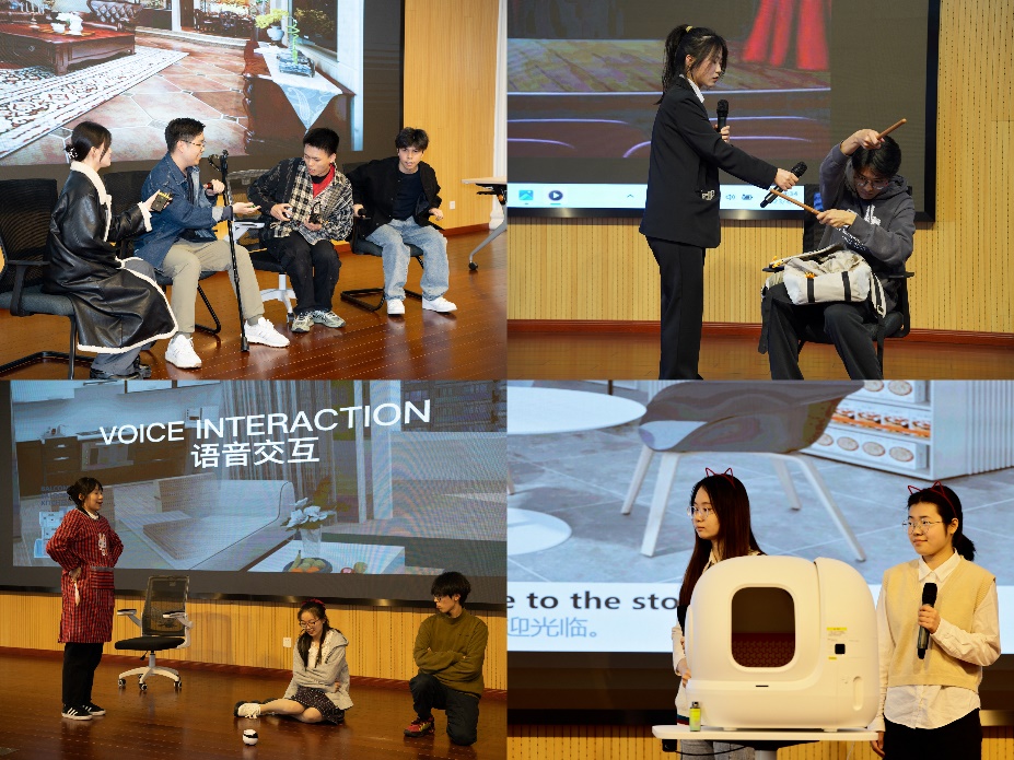 4月8日,按照赛程进行产品发布会,展示时间为8分钟。各个队伍通过演讲,介绍产品功能和优点。同时,配合使用幻灯片、视频或情景剧表演等形式进行展示,以便使观众能够更好地理解产品特点和用途。同学们流利的英语口语、独特精美的视频、富有激情的主持以及有趣的舞台设计,彰显了他们对比赛的极大热情和重视,给评委老师们留下了深刻印象。