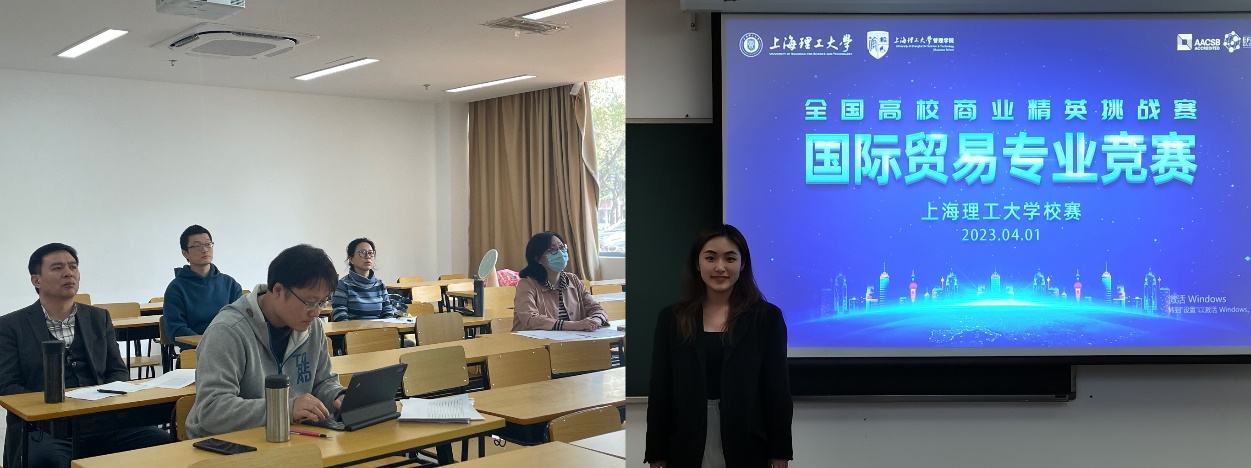 近日,由学校教务处主办、管理学院国贸系承办的2023年全国高校商业精英挑战赛国际贸易专业竞赛上海理工大学校赛成功举办。今年共有10支参赛队伍,来自管理学院、外语学院以及出版印刷学院等,共计79名同学参加了此次竞赛。管理学院国贸系主任罗芳、系副主任秦炳涛、系党支部书记何文、国贸大赛赛事主要负责人唐俏、管理学院国贸系教师韩冰和杨乐,参此次大赛并担任评委。大赛由管理学院ITC国贸赛社左佳晨同学主持。