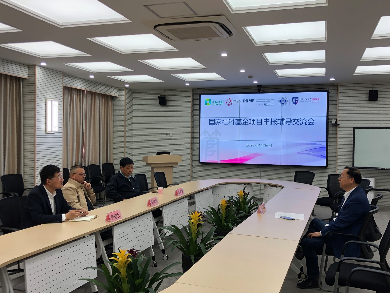 4月16日,管理学院举办沪江经管论坛系列活动(第49期)之国家社科基金项目申报辅导交流会。此次活动,学院邀请上海交通大学朱德米教授、上海交通大学李寿德教授、上海财经大学何建民教授、上海理工大学管理学院院长赵来军教授为学院教师作“一对一”辅导。活动由管理学院院长赵来军主持。