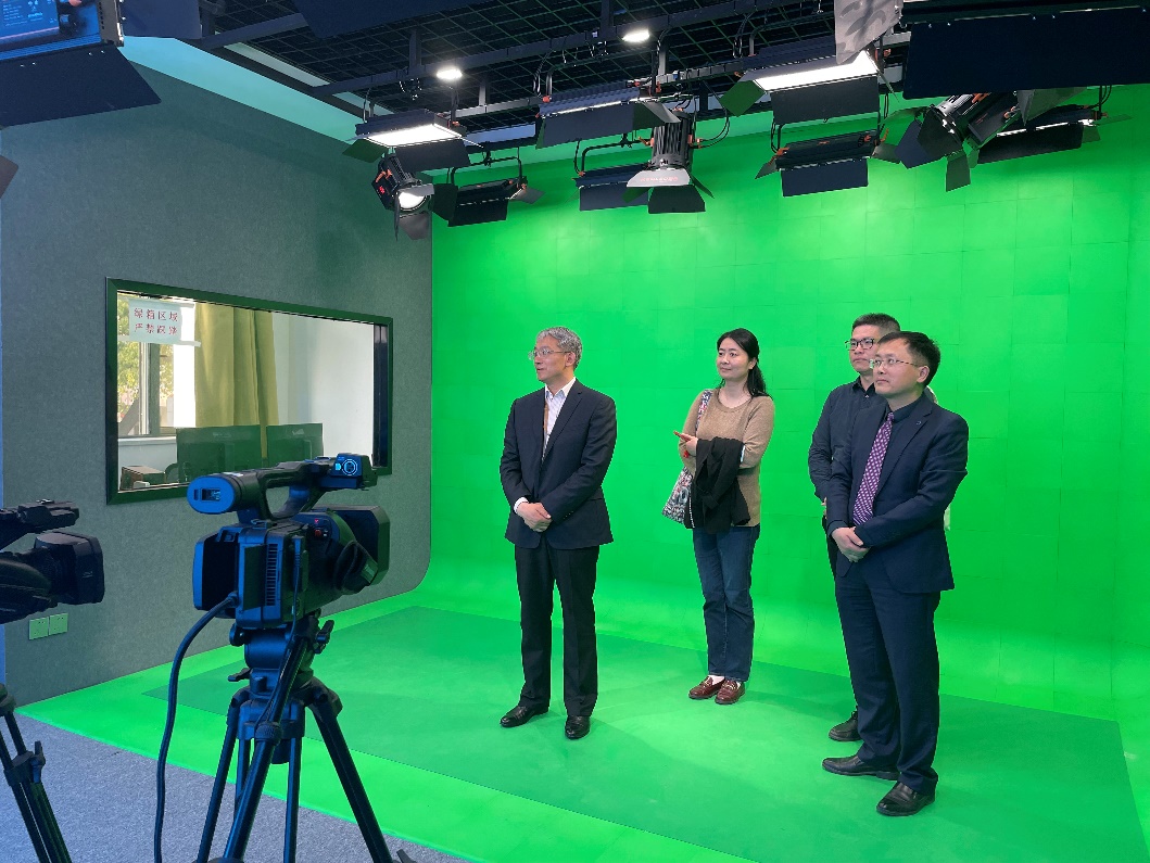 座谈会后,朱春林一行参观了我校修缮一新的“逸兴楼”,实地体验了裸眼3D、互动研讨、虚拟演播等特色智慧教室的教学应用场景。