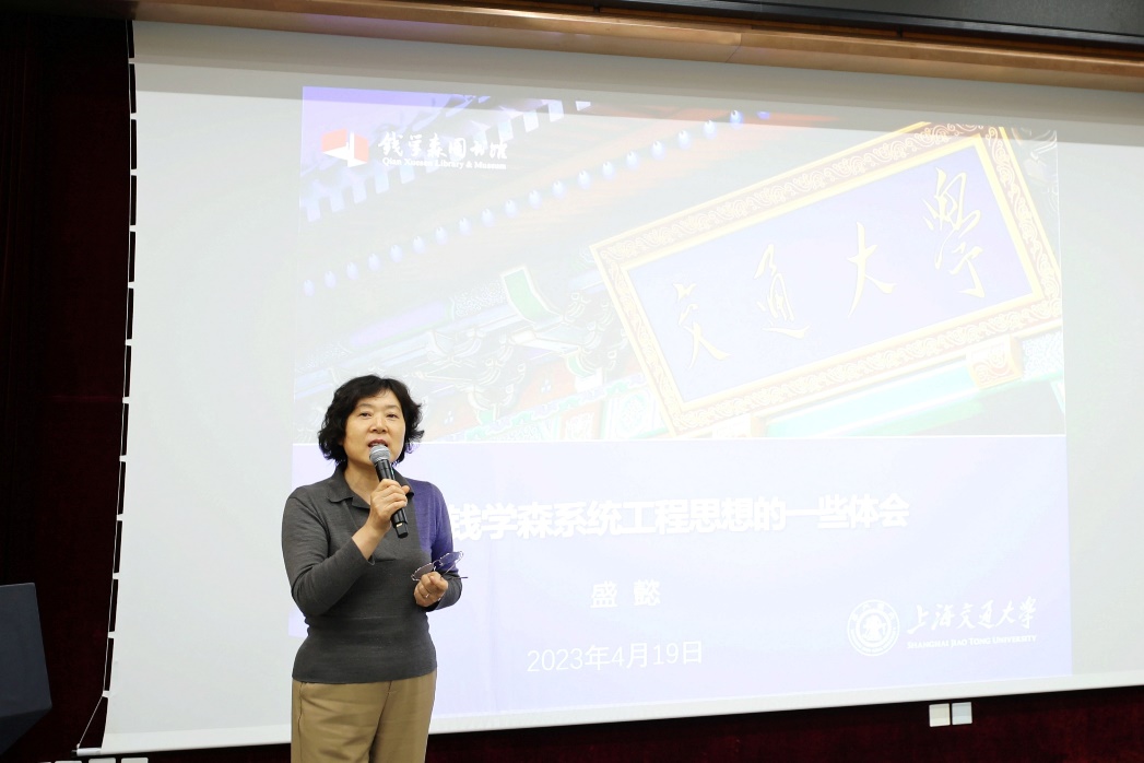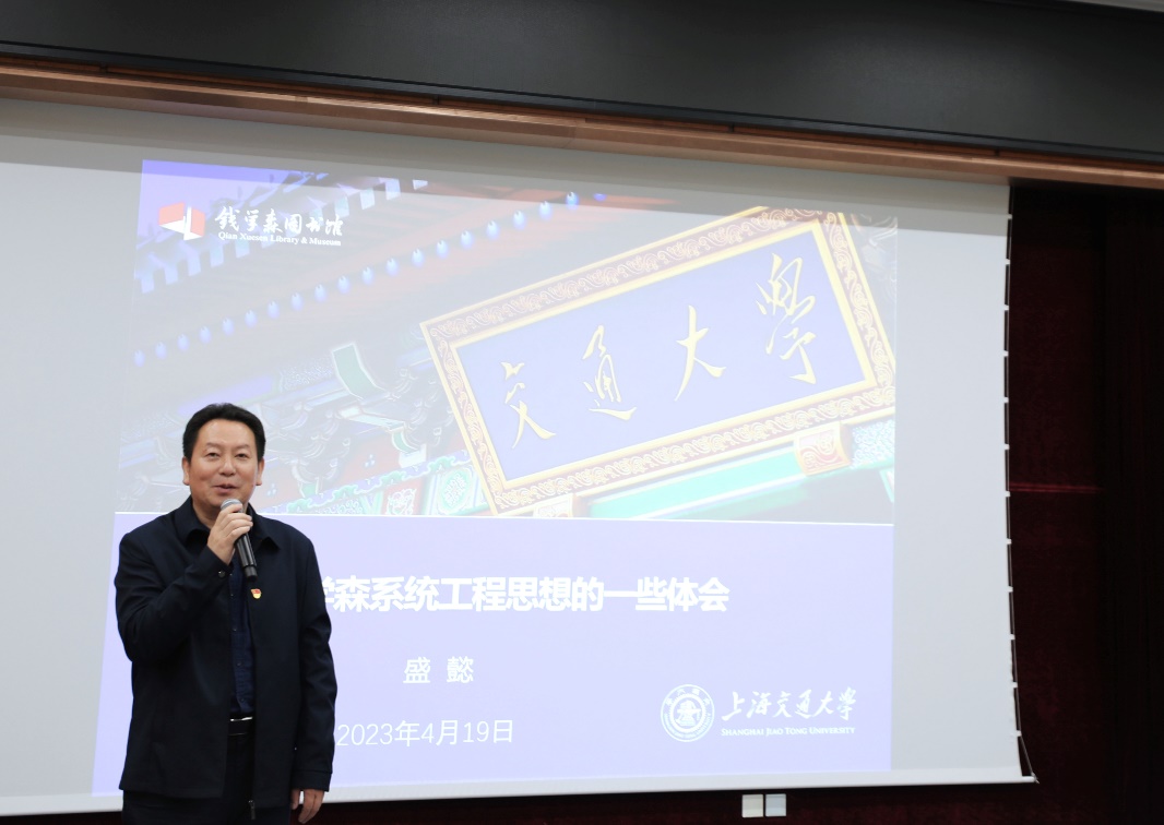 随后,大家共同听取了钱学森图书馆党总支书记、副馆长盛懿所作的《学习钱学森系统工程思想的一些体会》主题报告。盛懿从“系统工程中国学派的奠基之作”“钱学森系统工程思想的内涵与意义”“钱学森系统工程思想的实践与运用”“钱学森系统工程思想与新时代中国特色社会主义建设”等方面,讲述了钱学森作为一个战略科学家和人民科学家,以系统工程思想为我国社会主义建设提供指引,助力国家治理体系和治理能力现代化。