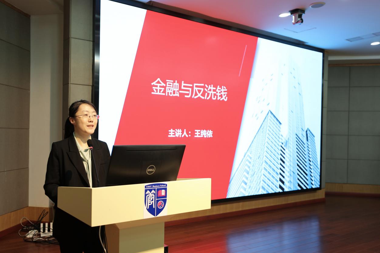 课上,王纯依首先从金融和法律的角度以生动的案例分析了洗钱犯罪的各种表现形式,然后结合《中华人民共和国反洗钱法》、中国人民银行和中国银行保险监督管理委员会颁布的有关金融机构反洗钱法律法规,对金融机构如何进行反洗钱进行了分析,并在分析反洗钱国际标准的基础上,介绍了中国多层次的国家洗钱风险评估体系和国家反洗钱战略政策。在此基础上,从国家、金融机构和个人三个层面分析了反洗钱的重要意义。最后,结合自己在金融领域10多年反洗钱工作的研究和实践经验,就大学生如何避免陷入洗钱风险、如何更好地履行国家反洗钱义务给出了建议。