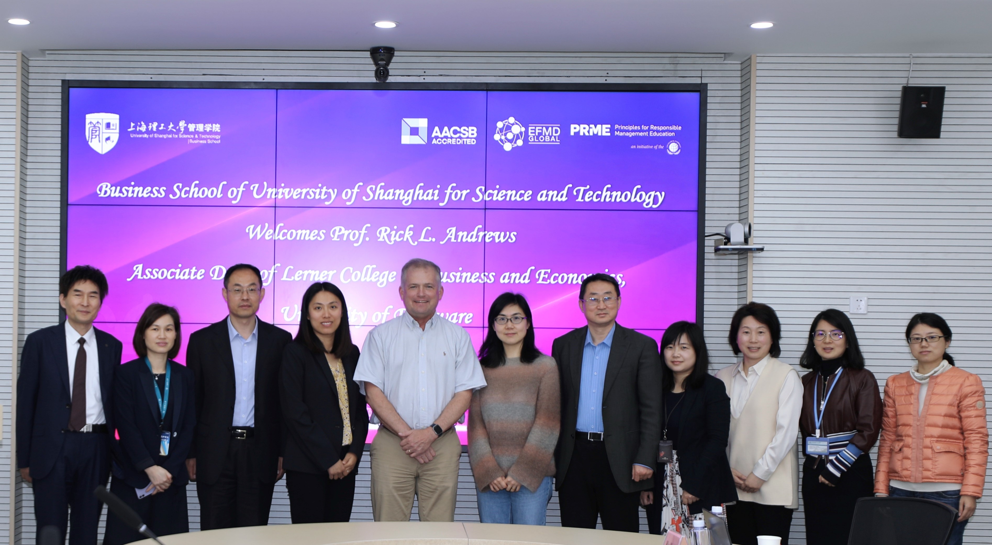 4月25日,美国特拉华大学勒纳商学院(Lerner College of Business and Economics, University of Delaware)副院长瑞克安德鲁斯(Rick L, Andrews)一行访问管理学院,国际交流处副处长徐琳,副科长刘媛,管理学院副院长、专业学位教育中心副主任张峥,以及学院相关部门代表与来访人员就联合培养双学位MBA项目进行座谈交流。会议由张峥主持。
