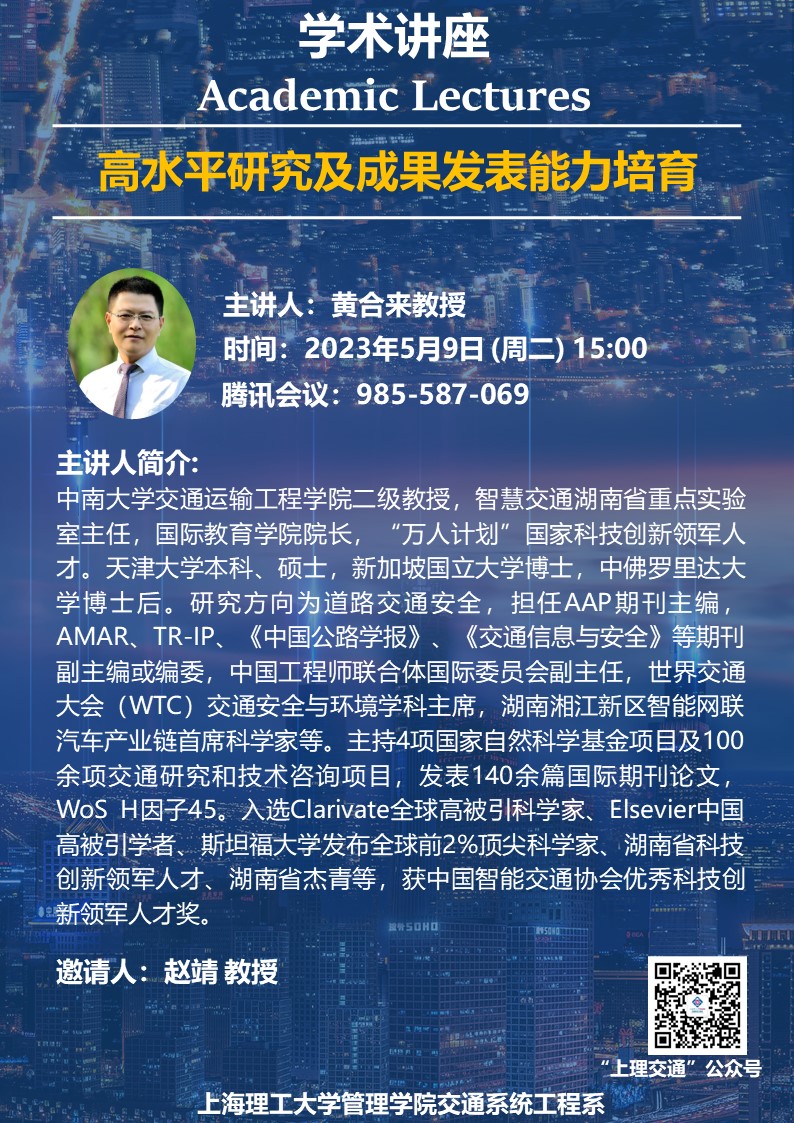 沪江经管论坛系列活动(第53期):高水平研究及成果发表能力培育