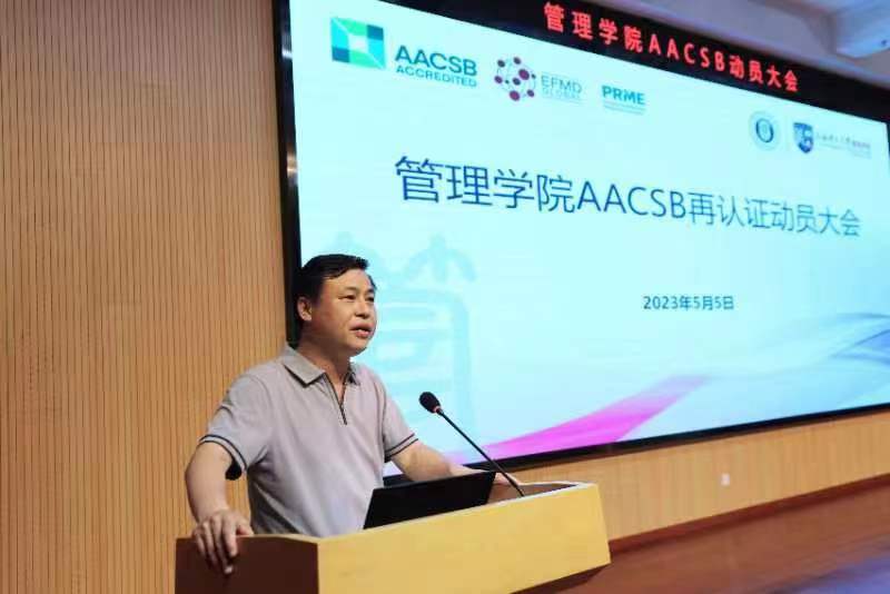 为迎接即将到来的AACSB再认证现场评估,5月5日下午,管理学院在学院五楼第一会议室召开AACSB再认证动员大会。管理学院党政领导班子成员,参与座谈的教师和学生代表参加会议。动员大会由副院长何建佳主持。