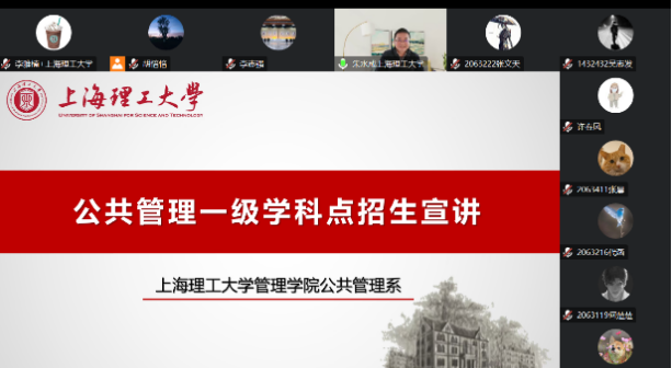 5月24日上午,上海理工大学公共管理系成功举办研究生招生系列宣讲之“上海海洋大学”站。 上海海洋大学文化与法律学院党委副书记李志强,上海理工大学公共管理系朱水成主任、李雅楠副教授出席本次活动。活动吸引了上海海洋大学2020级行政管理专业的40余名学生参加,宣讲会由胡愔愔老师主持。