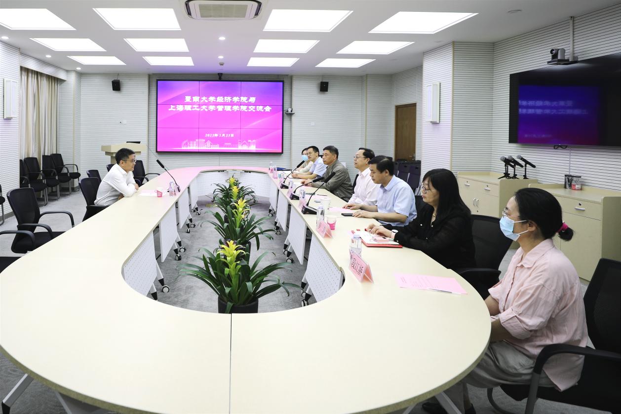 赵来军对冯帅章的到来表示热烈欢迎,并从学院历史、师资力量、专业学位中心建设、学科发展、国际化建设等方面介绍了学院情况。他希望,双方继续加强交流,带动学院经济学等相关学科取得新突破,促进学院高质量发展。随后,冯帅章介绍了暨南大学经济学院的基本情况。双方就师资管理、学科建设、人才培养等内容进行了深入交流。