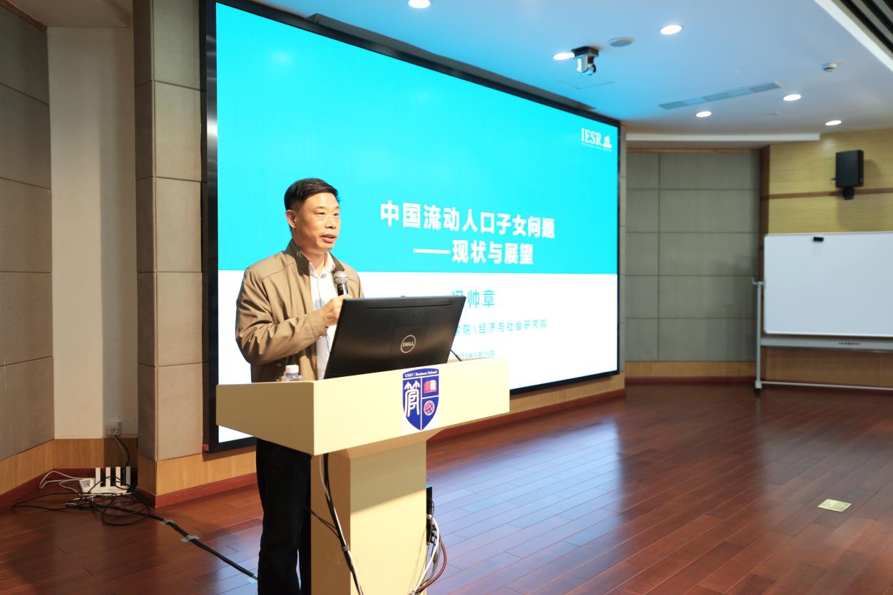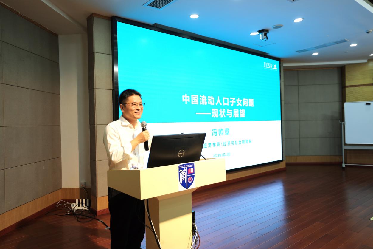 座谈会结束后,冯帅章为管理学院师生作了题为“中国流动人口子女问题:现状与展望”的报告。该研究基于我国人力资本发展和流动人口子女教育现状,展望流动人口子女教育的长期影响和代际传递效应。报告关注改革重点,讨论了流动人口子女教育存在的问题及其产生的制度壁垒,希望为未来国家流动人口子女教育政策调整,以人口高质量发展支撑中国式现代化提供理论参考。雷良海主持报告会。