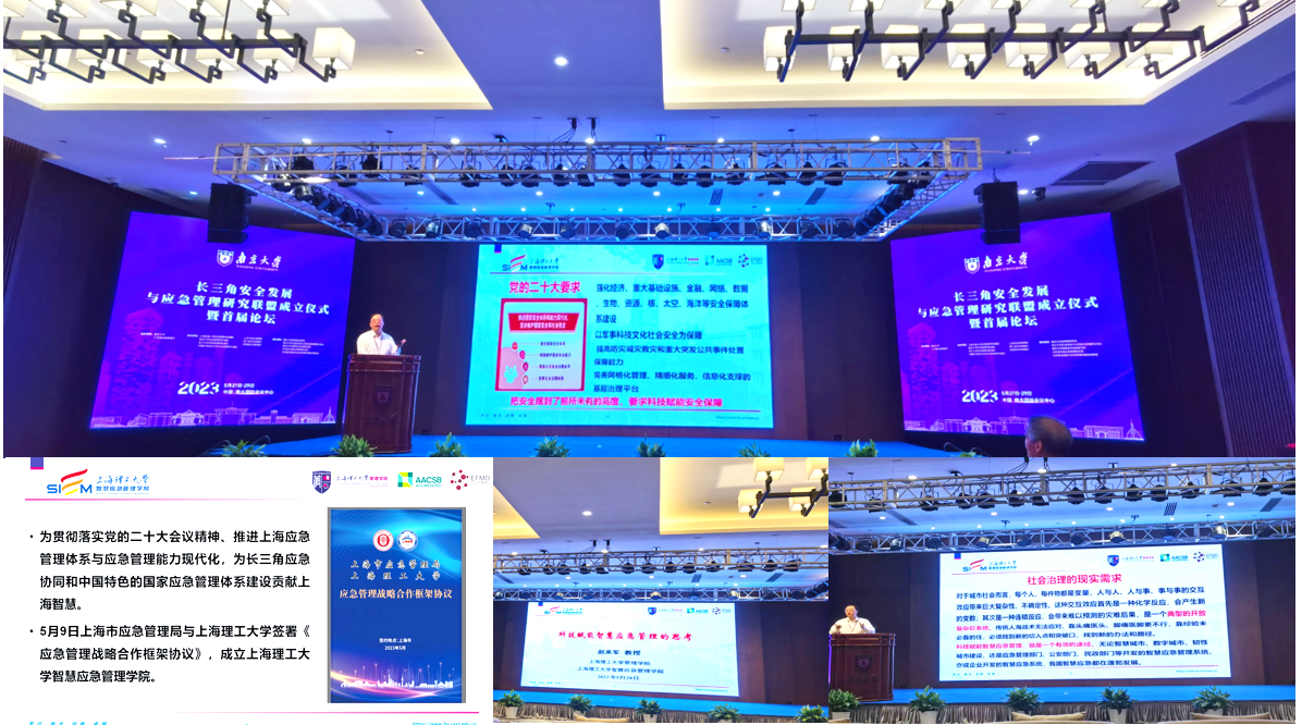 5月27日-28日由南京大学和江苏省应急管理厅主办,上海交通大学应急管理学科团队、复旦大学应急管理学科团队、浙江大学大学应急管理学科团队、中国科学技术大学应急管理学科团队、上海市应急管理局、浙江省应急管理厅、安徽省应急管理厅协办,南京大学政府管理学院、南京大学社会风险与公共危机管理研究中心、南京大学国家安全发展研究院、江苏省中安应急管理研究院、江苏安全发展与应急管理决策咨询基地承办的“长三角安全发展与应急管理研究联盟成立仪式暨首届论坛”在南京大学国际会议中心召开,管理学院院长、智慧应急管理学院执行院长赵来军教授,管理学院副院长何建佳教授应邀参加会议。来自主办单位、协办单位、承办单位和国防科技大学、中国人民大学、西安交通大学、哈尔滨工业大学、武汉大学、上海理工大学、联通数字科技、中国移动系统集成公司、北京市科学技术研究院等相关单位200多人出席论坛。
