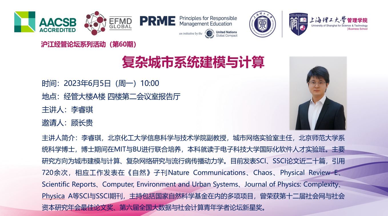沪江经管论坛系列活动(第60期):复杂城市系统建模与计算