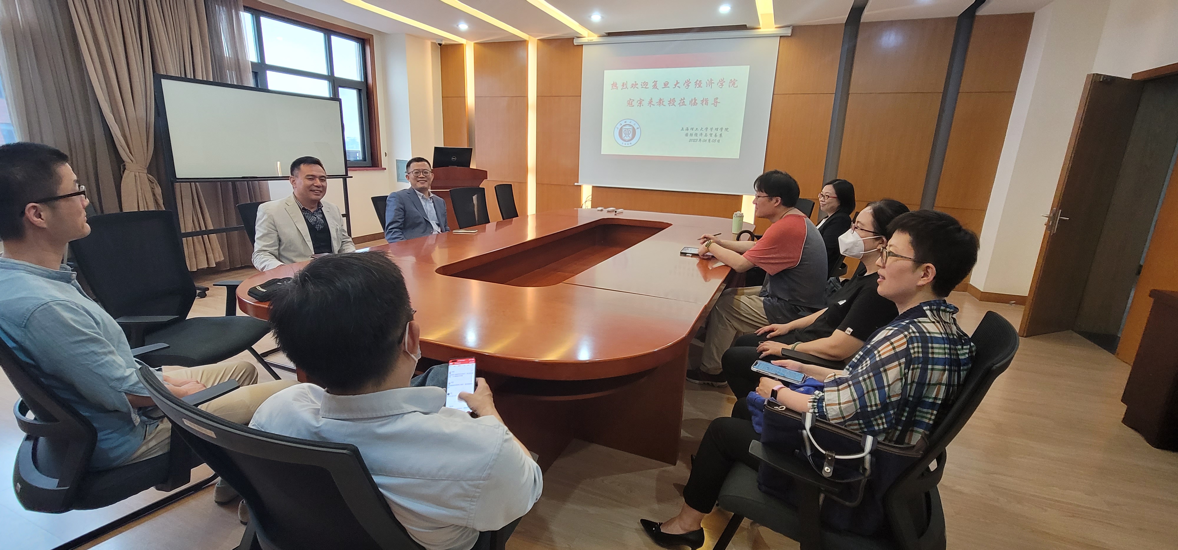 2023年6月5日,复旦大学经济学院副院长寇宗来教授来访管理学院国贸系,就本科培养、专业发展以及教师科研等诸多方面,与国贸系教师在910会议室交流探讨。国贸系副主任秦炳涛、党支部书记何文和国贸系教师出席本次会议。会议由秦炳涛主持。