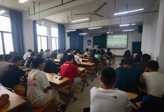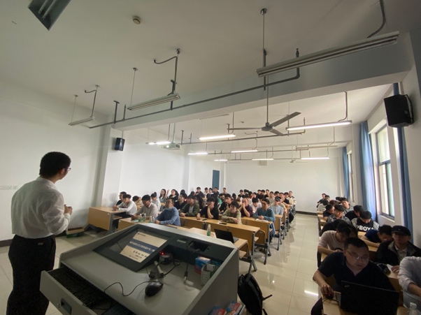 随后,韩印一行面向南通大学本科生进行宣讲,介绍了上海理工大学现状以及交通运输工程学科发展历程,并高度认可上海理工大学在读的南通大学毕业生的综合能力。现场同学们与韩印开展了热烈的交流,韩印幽默风趣的回答也调动了学生强烈的兴趣。接着,上海理工大学管理学院副院长赵靖介绍了上海理工大学交通运输工程学科学生培养情况,并详细介绍了在上海理工大学交通专业深造的南通大学毕业生优秀代表情况。赵靖还为南通大学交通工程专业本科生做了题为“城市道路交叉口优化设计与二维轨迹建模”的学术报告,系统性地展示了自己从博士阶段开始至今的学术成长历程与创造性成果,并鼓励学生们要在学生阶段努力提升自己,勇于创新。