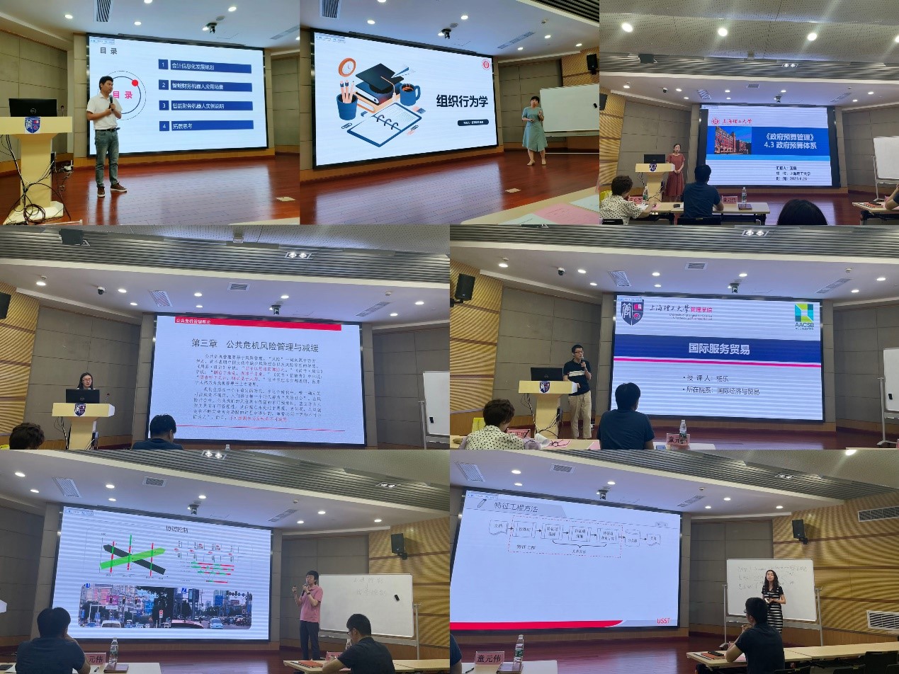 此次比赛吸引了学院各个专业青年教师的踊跃参与,来自交通系统工程系的王嘉文、信息管理与信息系统系的尹裴、财政税务系的王聪、工商管理系的田颖、公共管理系的赵欣、国际经济与贸易系的杨乐、会计系的王万军、工业工程系的耿秀丽、系统科学系的陶杰通过丰富多彩、内容详实的PPT课件,内容精炼的微视频、精心设计的板书等多种形式,声情并茂地进行了教学展示,显示了管理学院青年教师饱满的教学热情、蓬勃向上的育人风貌和精益求精的教学态度。在每位老师比赛结束后,三位评委都提出了有针对性、对参赛老师提升教学水平大有裨益的意见。