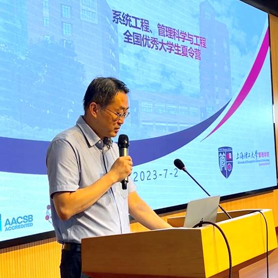 7月2日,系统工程和管理科学与工程两个学科举办2023年全国优秀大学生夏令营活动。副院长张峥教授、学科带头人马良教授、教师代表耿秀丽教授、刘勇副教授、赵敬华副教授、陆芷博士和姚丹丽博士等,学生代表余冰和赵梦娜等,以及来自70所高校的100多名“2023年管理科学与工程全国优秀大学生夏令营”和“2023年系统工程全国优秀大学生夏令营”的营员参加本次活动。活动由刘勇主持。