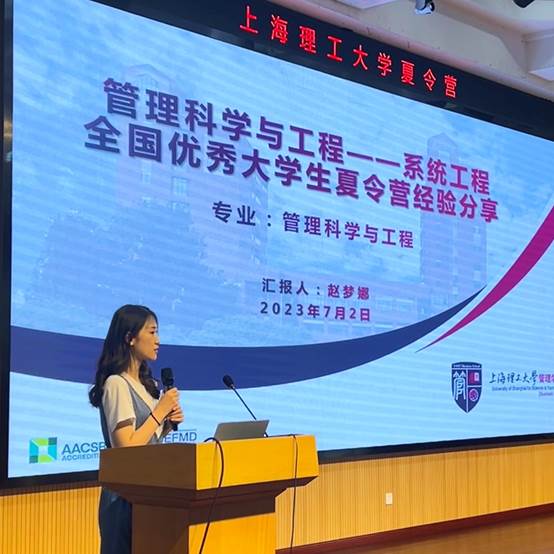 在夏令营活动下半场,首先由系统工程和管理科学与工程两个学科学生代表余冰和赵梦娜分享了考研经验和在校学习经验。