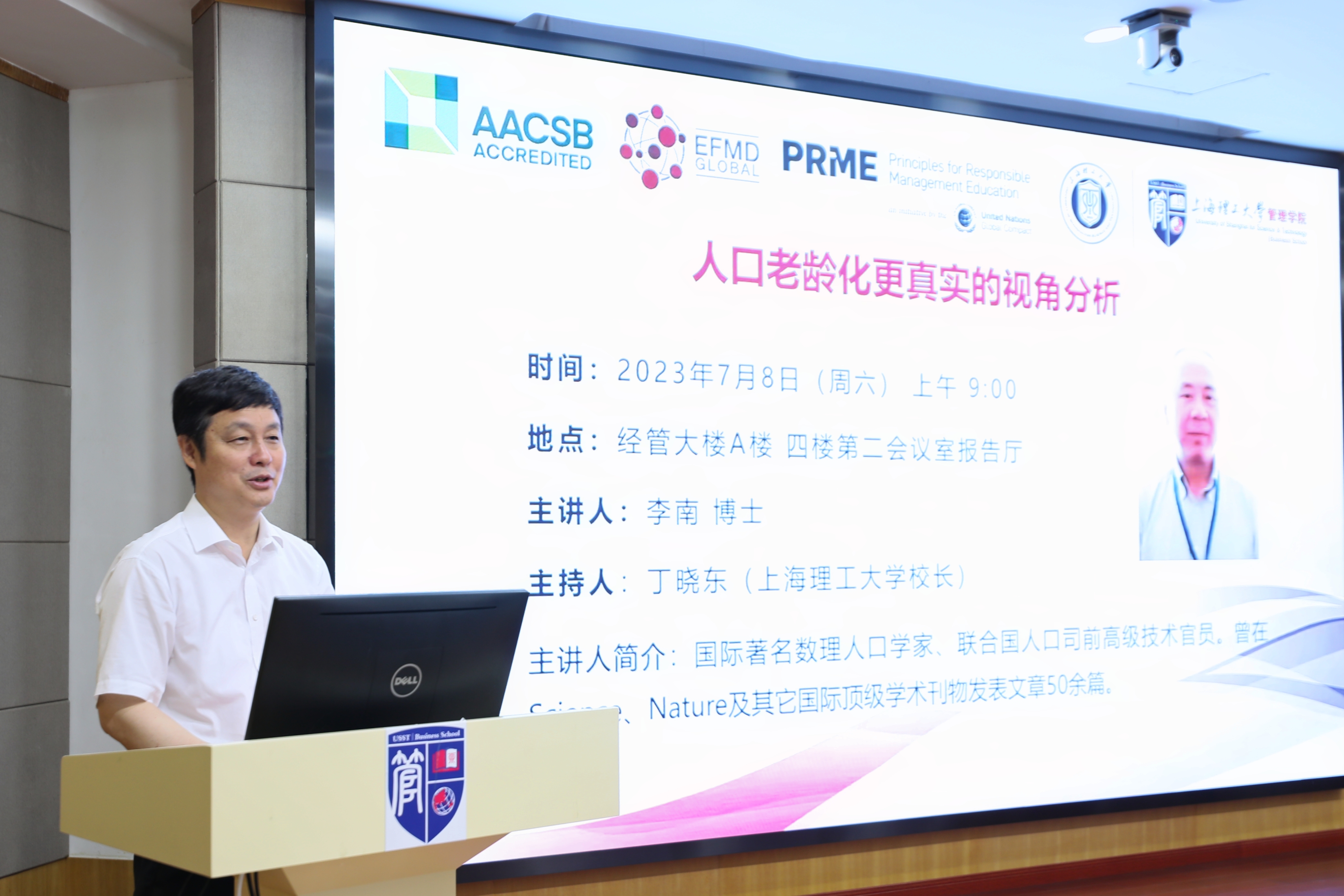7月8日,我校邀请国际著名人口学家、原联合国人口司高级技术官员李南博士作题为“人口老龄化更加真实的视角”的学术报告。我校相关学科师生及管理学院公共管理学科优秀夏令营学子等参加了报告会。报告会由校长丁晓东主持。