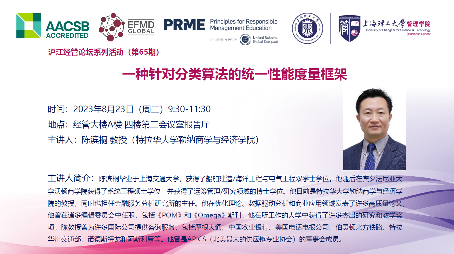 沪江经管论坛系列活动(第65期):一种针对分类算法的统一性能度量框架