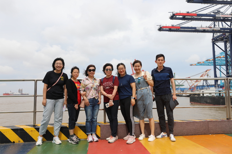 振华重工成立于1992年,是世界上最大的重型装备制造厂、重型装备制造行业的知名企业,振华重工长兴分公司“振华港机工业游学基地”荣获崇明区爱国主义教育基地。此次参观学习,教师们登上位于29层的观光平台俯瞰整个厂区,雄伟的岸桥塔吊沿着海岸线依次