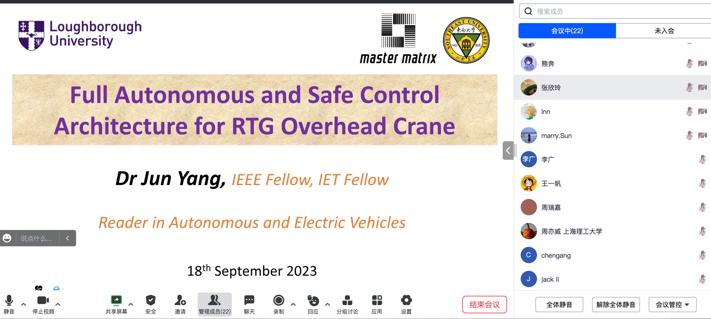 9月18日下午,英国拉夫堡大学航空与汽车工程系杨俊教授应邀为我院师生作题为“Full Autonomous and Safe Control Architecture for RTG Overhead Crane”的报告。报告会由交通系统工程系陈倩博士主持,学院相关教师、研究生参加了报告会,此次讲座还吸引了兄弟院校的老师和学生。