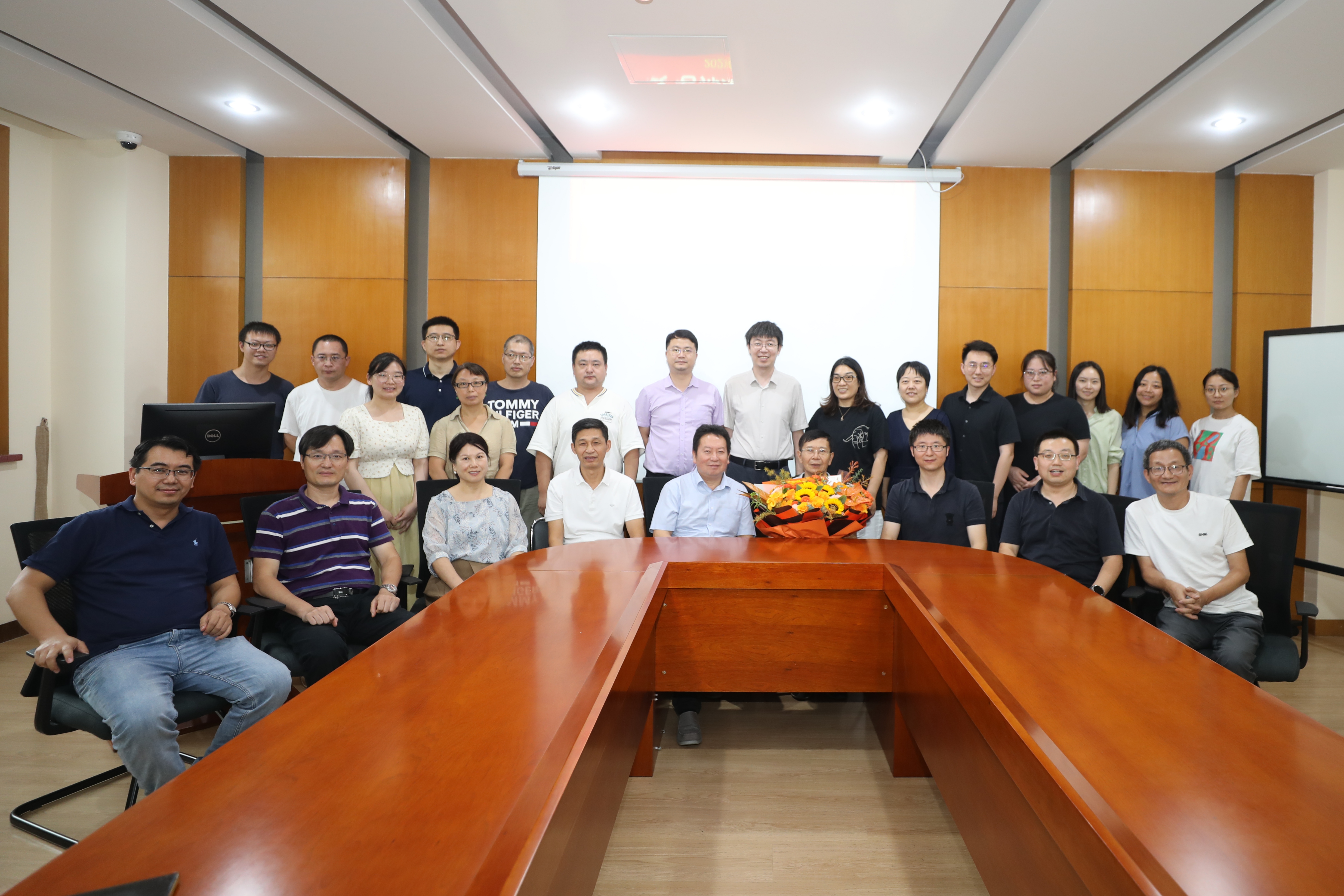 系领导姚佼、刘魏巍、王嘉文代表全系向严凌颁发荣退纪念品,所有参会人员合影留念。