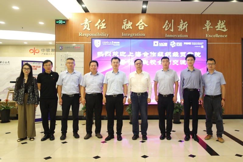 郑师介绍了中国-上海合作组织经贸学院建设情况,表示非常希望与上理深入合作,并诚挚邀请学校发挥学科及人才优势合作共建中国-上海合作组织经贸学院。陈超介绍了上合国际枢纽港情况,希望未来双方可以在产学研对接、成果转化、人才就业等方面加强合作。蒋公宝介绍了首届全国大学生职业规划大赛情况及设立管理学院胧爱奖学金方案。