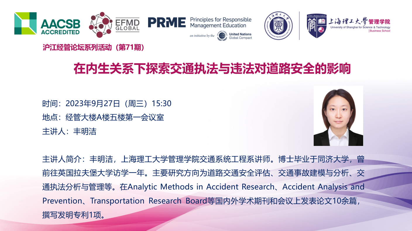 沪江经管论坛系列活动(第71期):在内生关系下探索交通执法与违法对道路安全的影响