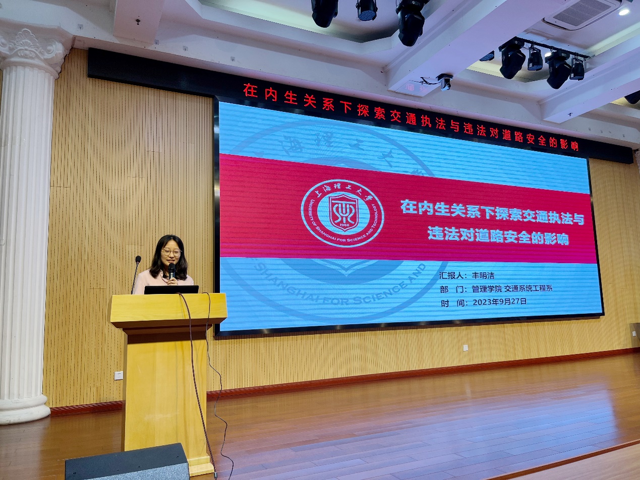 9月27日,沪江经管论坛系列活动(第71期)之青年学术沙龙在管理学院五楼第一会议室顺利举行。交通系统工程系青年教师丰明洁作题为“在内生关系下探索交通执法与违法对道路安全的影响”的学术报告。报告会由交通系统工程系青年教师朱陈强主持,交通系统工程系系主任刘魏巍、青年教师吴静娴、以及管理学院研究生参加了此次报告。