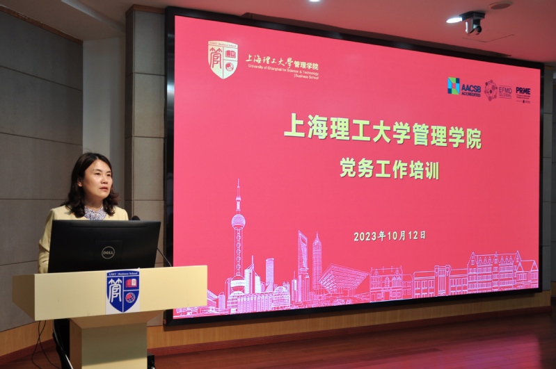 为全面提升基层党建工作质量,提升基层党支部书记党务工作能力,10月12日下午,管理学院党委举行“支部共建聚合力,追求卓越谱新篇”支部书记党务工作质量提升培训会,校党委组织部曹军,”教育部第三批全国党建工作样板支部“、上海市教卫系统”党支部建设示范点“机械学院机械制造党支部书记袁静,上海市优秀党务工作者、环境与建筑学院土木工程系教工党支部书记李秀君,上海高校”百个学生样板党支部“光电学院光学工程(学硕)研究生党支部书记华昕怡应邀出席会议,管理学院组织员、全体党支部书记、支部委员共60余人参加本次培训会议,会议由学院党委副书记蒲莹莹主持。