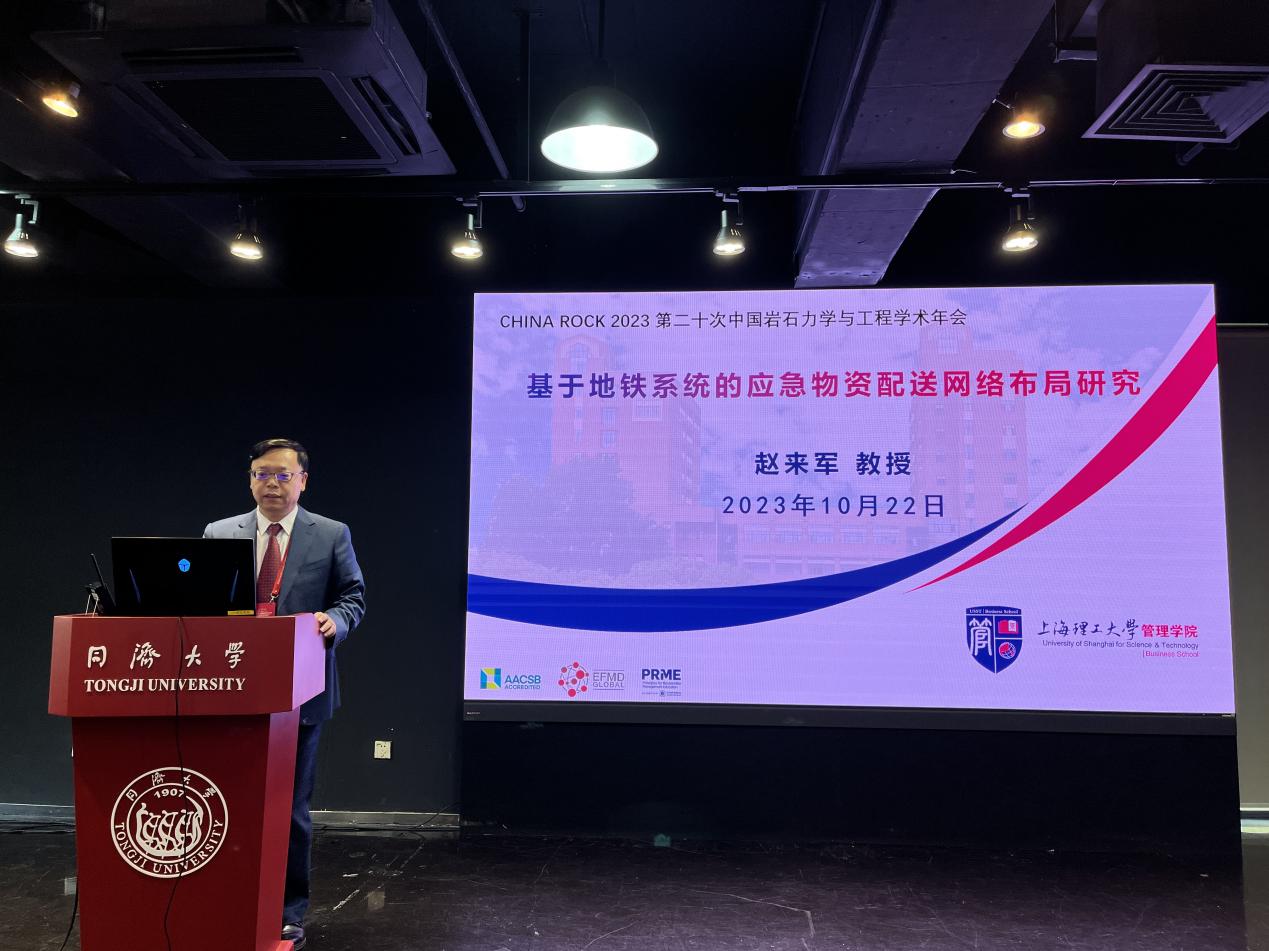 20231021-22日,CHINA ROCK 2023第二十次中国岩石力学与工程学术年会隆重召开。本次年会由中国岩石力学与工程学会和国际地质灾害与减灾协会共同主办,中国岩石力学与工程学会各分支机构、省级学会和国际岩石力学与岩石工程学会(ISRM)各专业委员会联合承办。上海设立 CHINA ROCK 2023 上海中心会场,我校作为卫星会场,协办本次会议。我校相关学科及专业五十余名师生在上海理工大学卫星会场参加本次年会。管理学院院长赵来军教授受邀出席CHINA ROCK 2023 上海中心会场会议,并作主题报告。